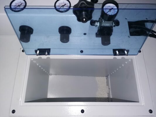 Mašina je opremljena automatskim pneumatskim punjenjem granuliranog ljepila. Na dnu postolja nalazi se veliki rezervoar kapaciteta 12,5 kg, iz kojeg se granule pomoću zračnog toka transportuju u gornji rezervoar za predtaljenje.