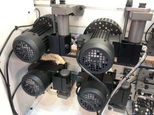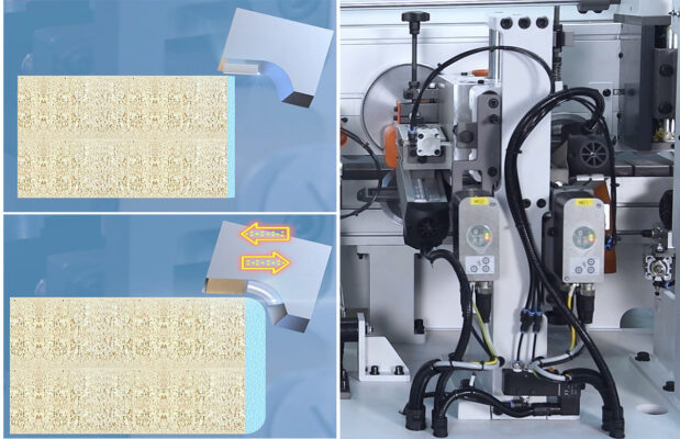 Potpuna servo kontrola. Strugača jedinica na servo pogonima opremljena je s dva noža od tvrde legure za radijus, koji nakon glodanja uklanjaju tanak sloj s obrađenog dijela ivice i eliminišu kinematičko talasanje, čime se dobija glatka površina. Prebacivanje jedinice na drugu debljinu ivice (od R2 do R1) vrši se putem servo pogona direktno s upravljačke ploče.