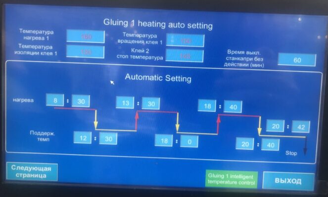 Mogućnost programiranja tehnoloških prekida zagrijavanja kotla za ljepilo.