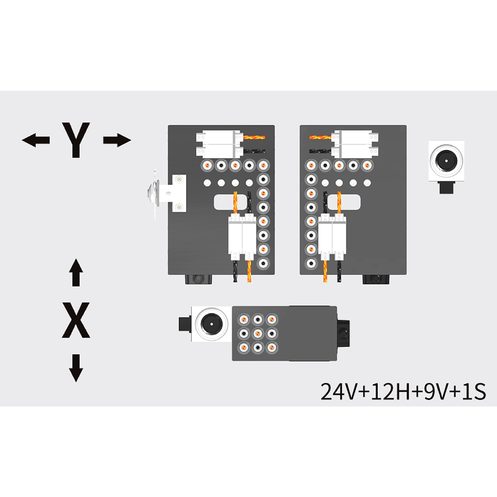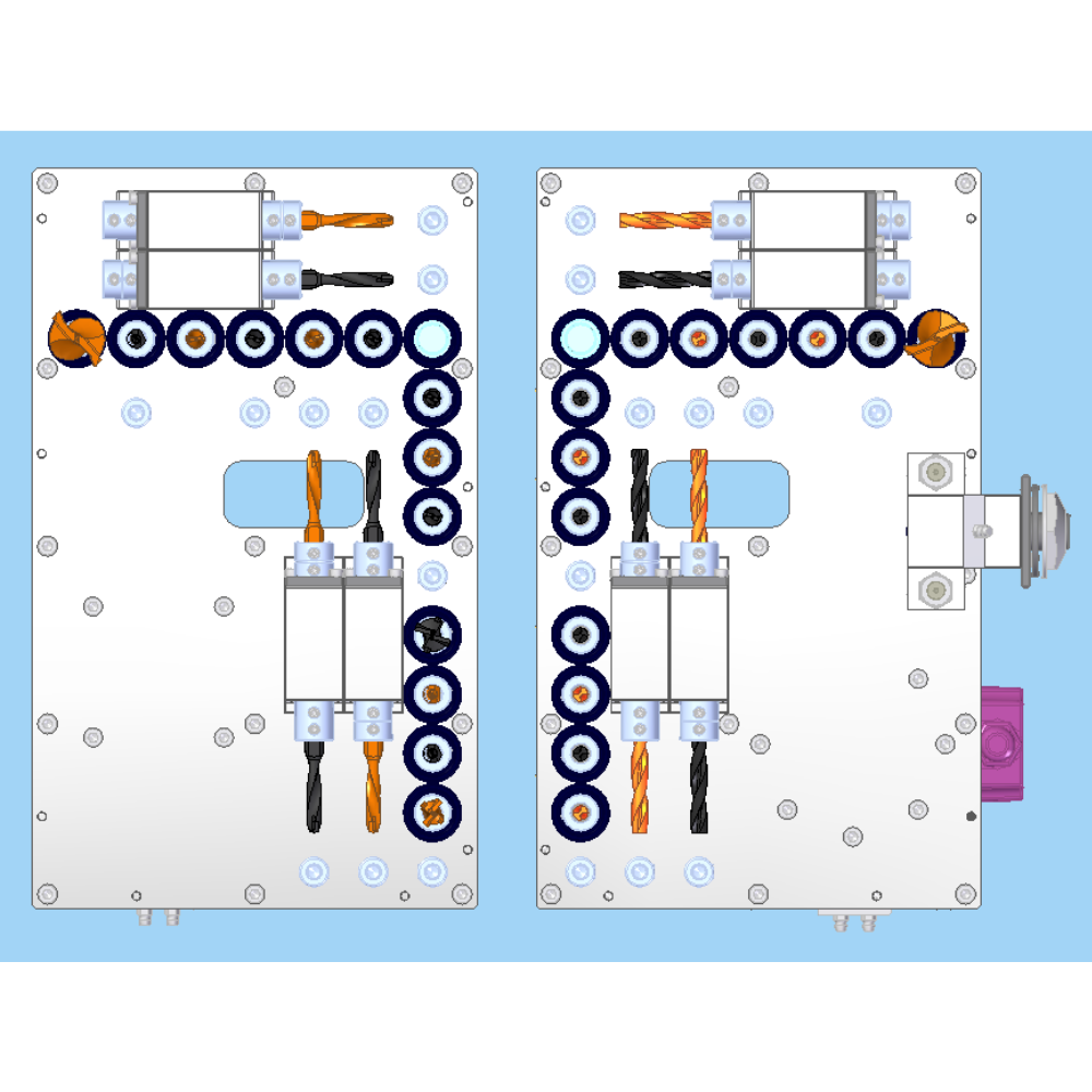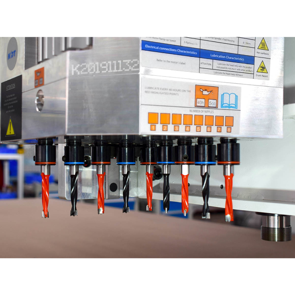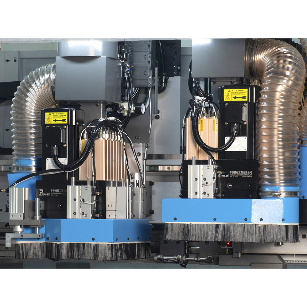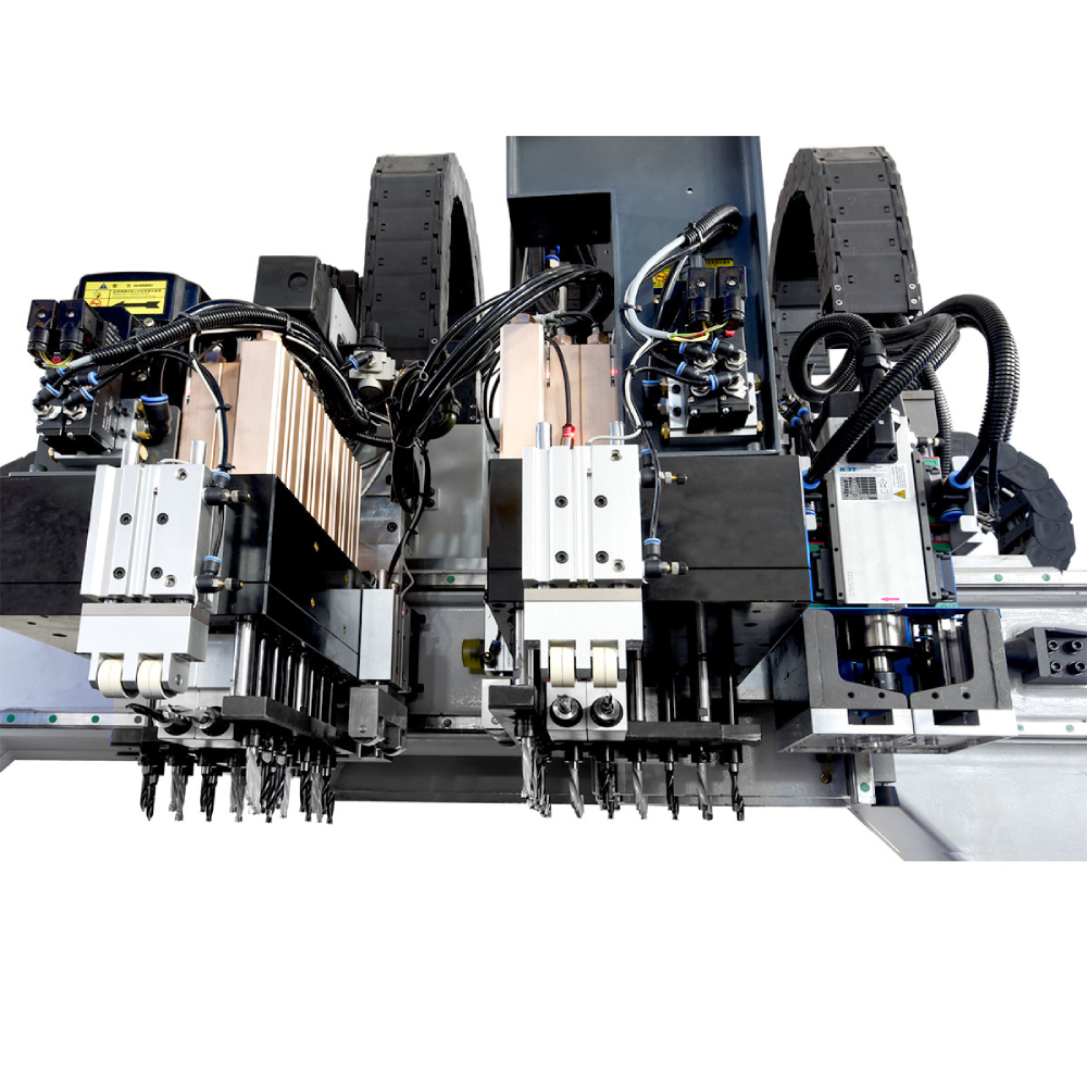 - Tri neovisne Protean jedinice za bušenje s 18 + 18 svrdla (24 okomita + 12 vodoravnih svrdla) i 9 donjih svrdla - ukupno 45 svrdla - obrada svih 6 strana,