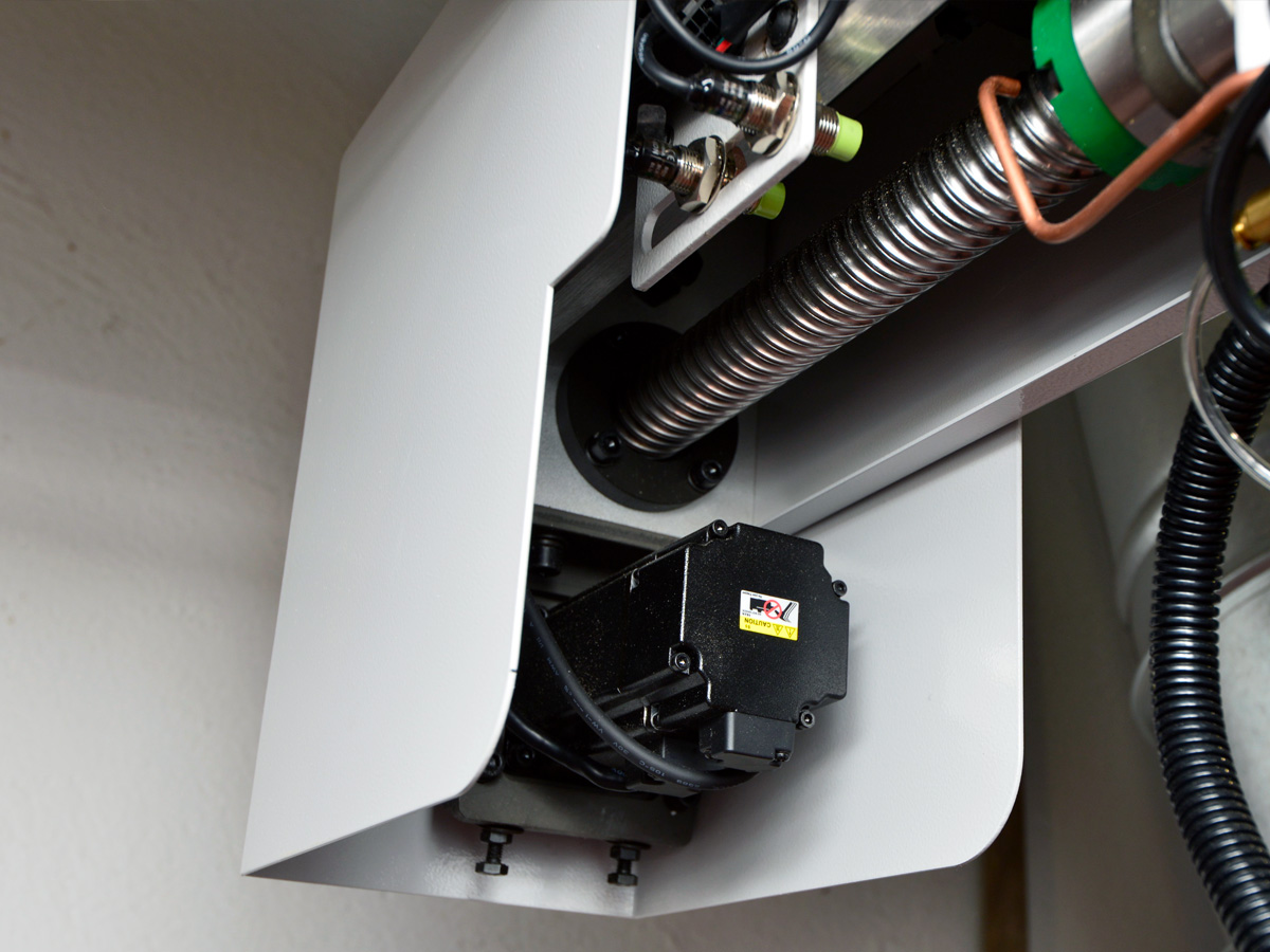 Za natančno in hitro žaganje ob desni masi skrbi servo motor, ki do 0,1 mm natančno nastavi želeno dimenzijo. Vse nastavitve se upravljajo preko zaslona na dotik.