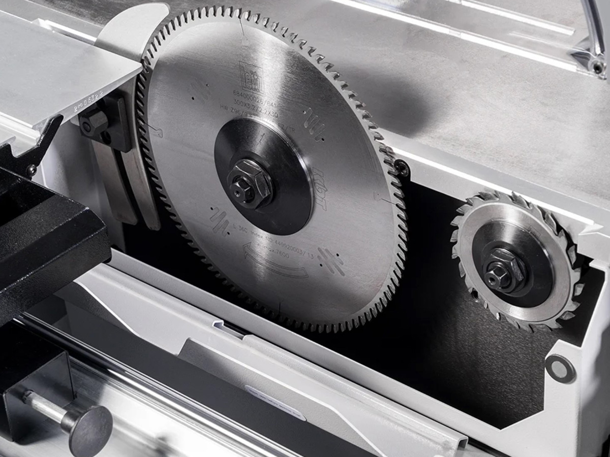 Enostavna nastavitev višine žagnega lista s pomočjo močnih linearnih vodil.