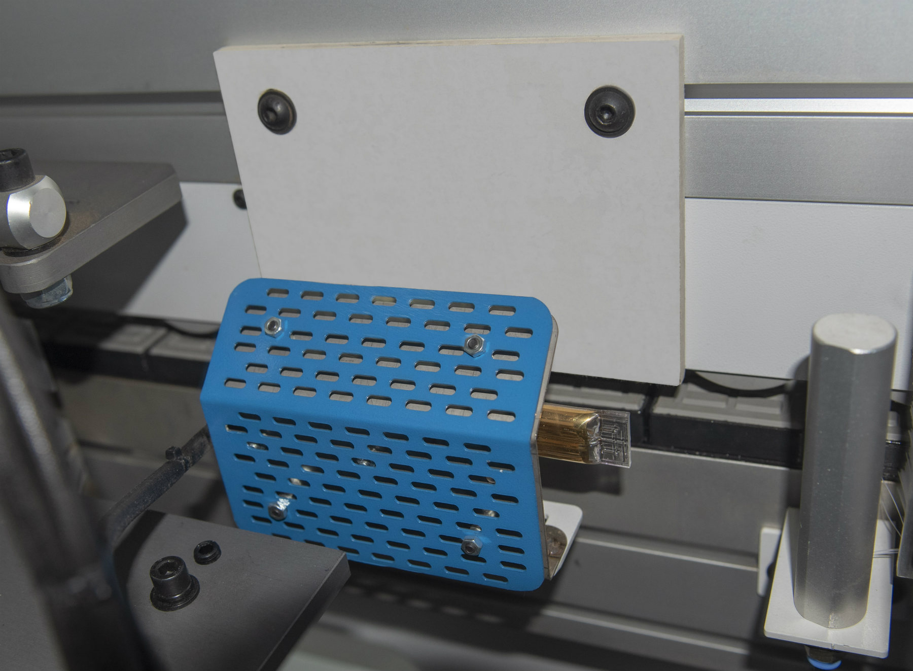 ![]() | Stroj je opremljen z avtomatskim pnevmatskim polnjenjem granuliranega lepila. Na dnu posteljice stroja je velik zalogovnik s kapaciteto 12,5 kg, iz katerega se granule s pomočjo zračnega toka transportirajo v zgornji zalogovnik s predtaljevanjem. |